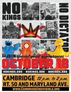 TOMORROW: NO KINGS DAY OF PEACEFUL ACTION IN CAMBRIDGE AND ACROSS AMERICA