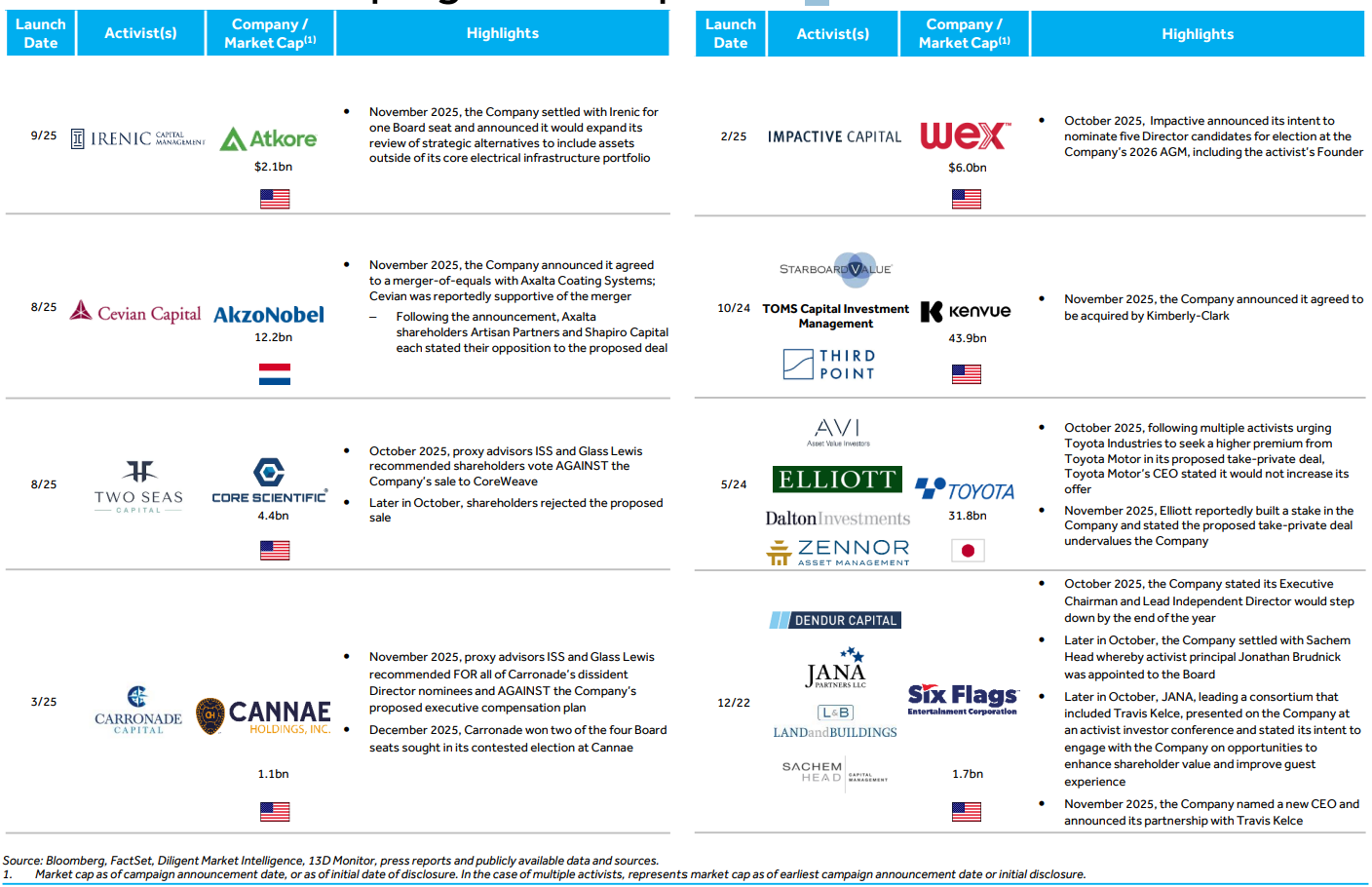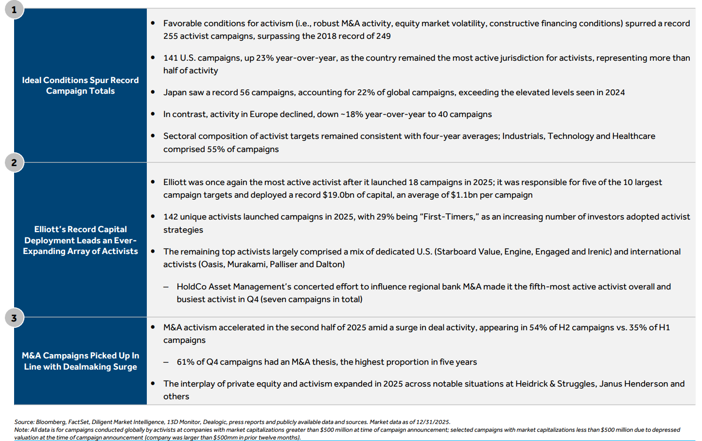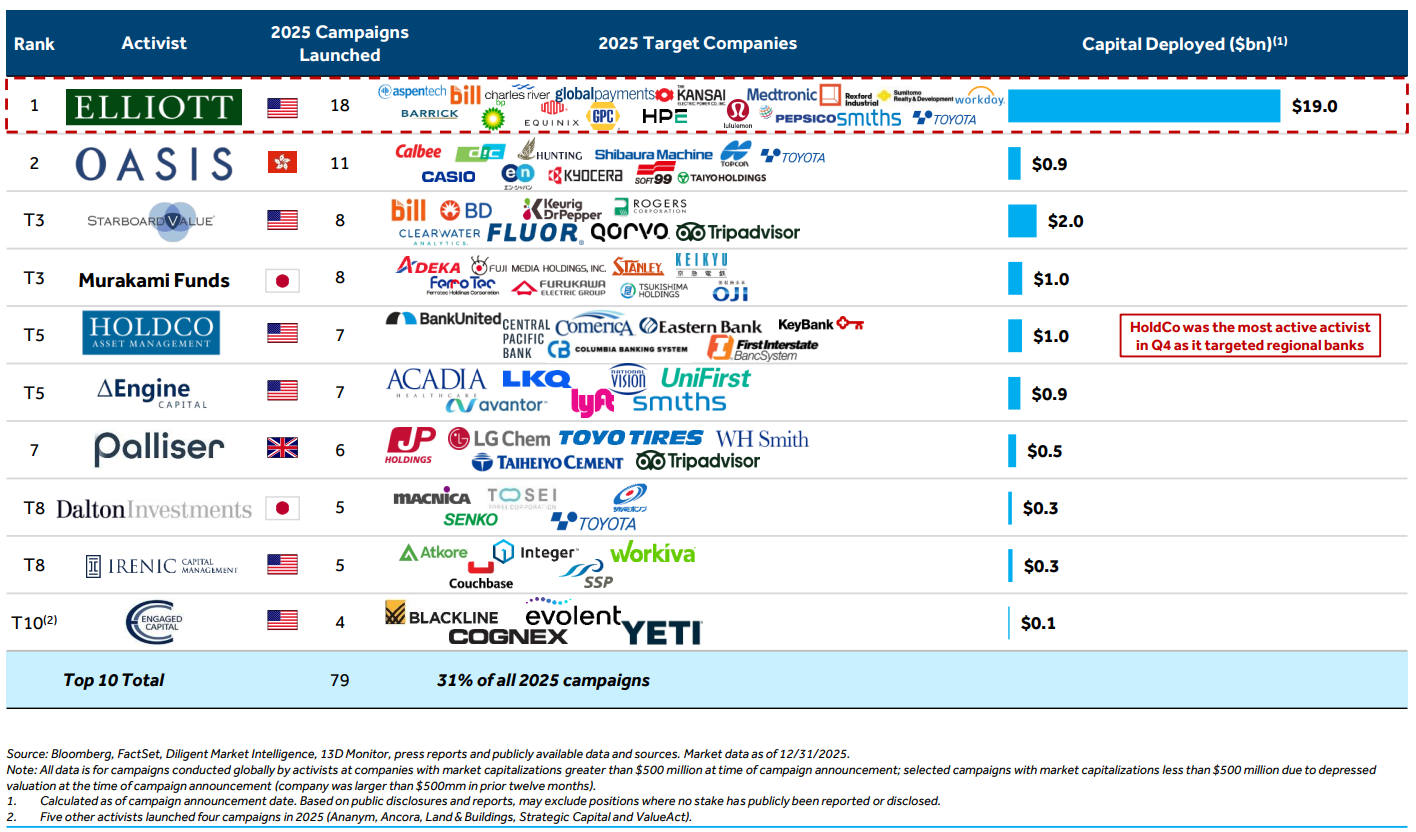 Elliott deployed a record $19.0bn of capital across 18 campaigns, leading a diverse array of U.S. and international activists