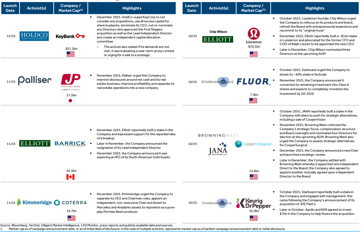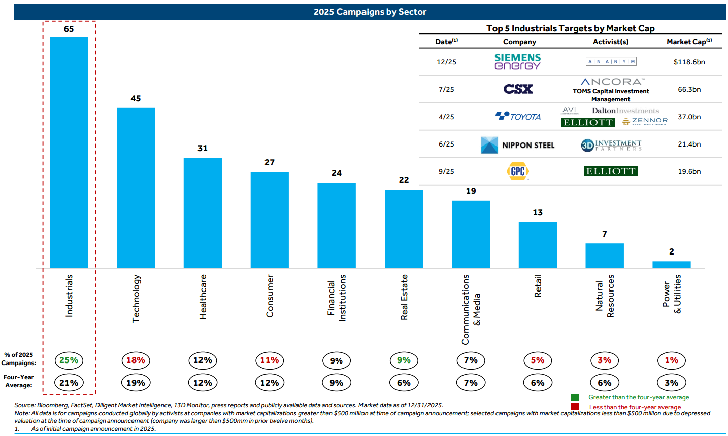 Industrials remains the focal point for activists, consistent with historical trends