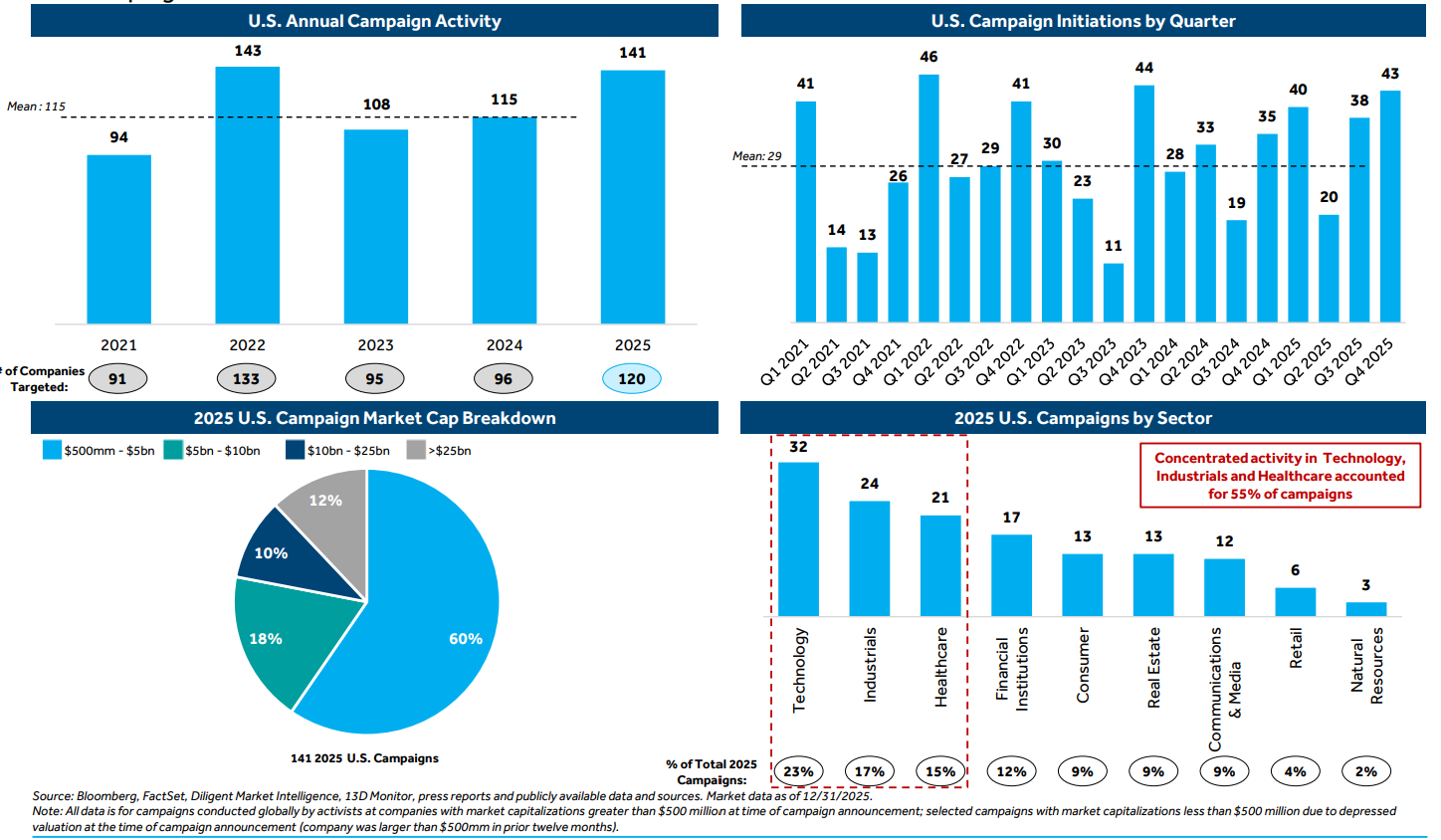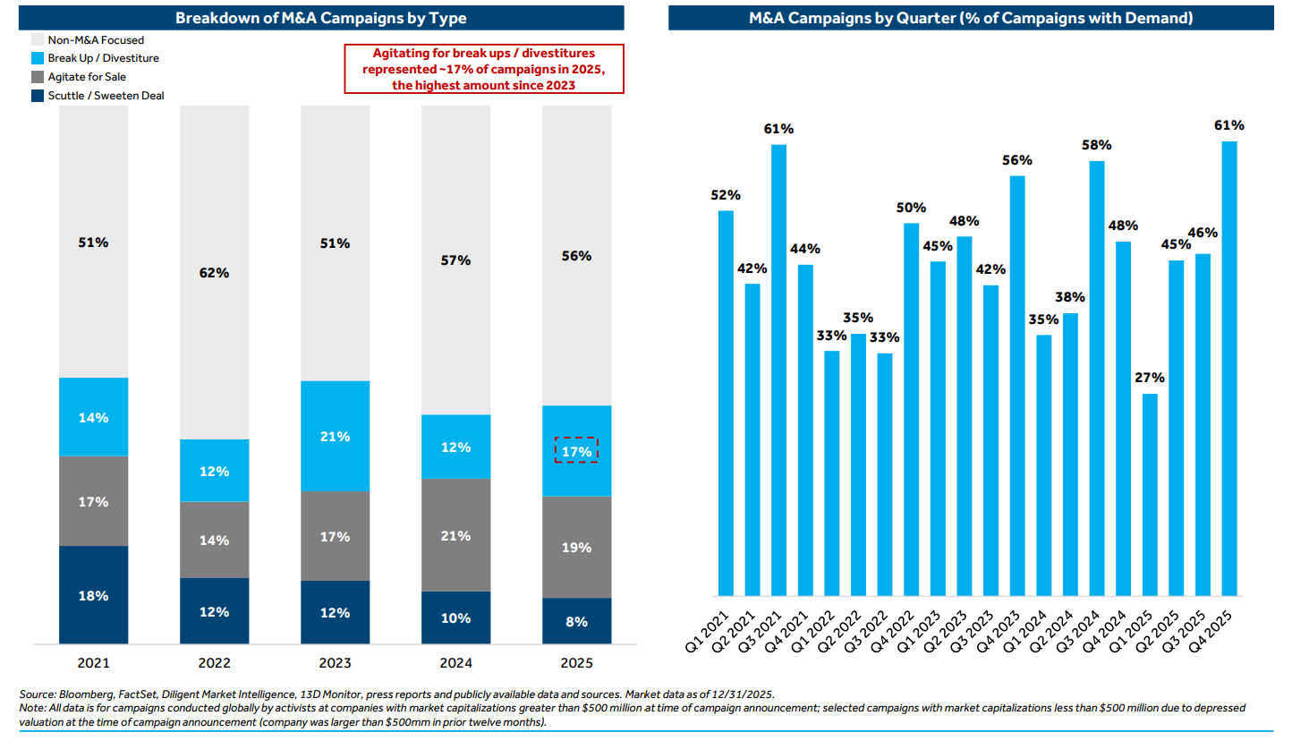 Q4 2025 was the busiest quarter in the last five years for M&A related campaigns, appearing in 61% of campaigns