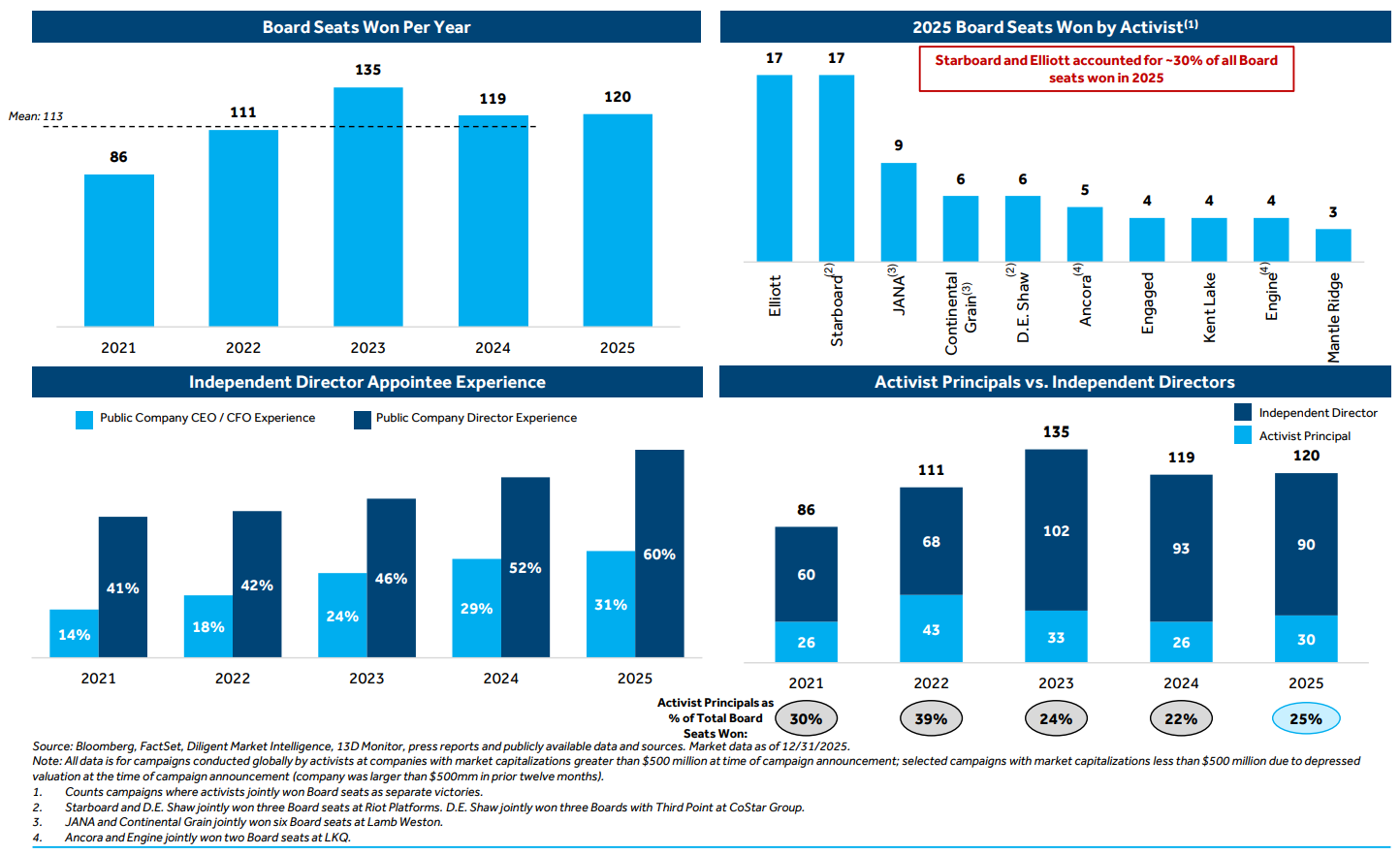 The number of board seats won in 2025 was in line with the four-year average